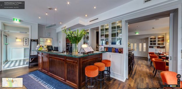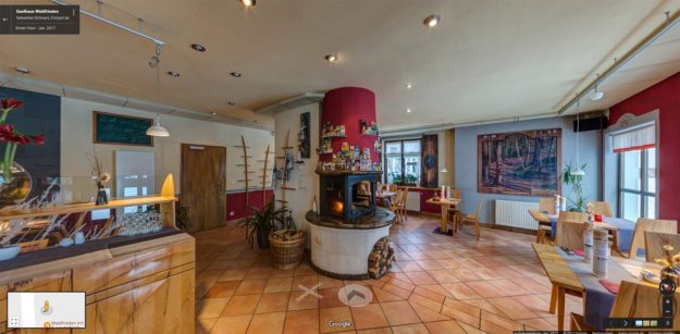 360° Ansicht vom Gasthaus Waldfrieden in Frauenwald. Zu sehen sind das Restaurant, das Gästehaus, ein Zimmer und die hauseigene Sauna. Gewähren Sie Gästen einen Vorab-Rundumblick in Ihre Räume und zeigen Sie, was Ihr Haus zu bieten hat.